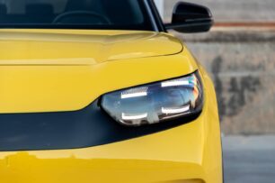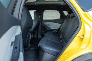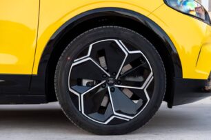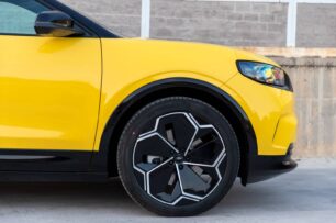 En la vista lateral puedes optar por llantas que van desde las 19 hasta las 21 pulgadas. Asimismo, dispones de una paleta de seis colores en sólido y metalizado, con tonos clásicos y alegres. En esta unidad puedes ver el Amarillo Vivid. Por su parte, la superficie acristalada es amplia, aunque la visibilidad limitada hacia detrás y los tres cuartos traseros.