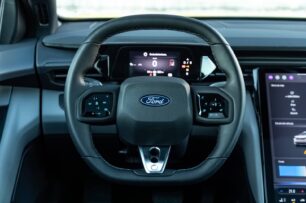 También la solución de poner solo dos elevalunas y un botón ‘REAR’ para seleccionar las traseras. Este elemento no nos gusta especialmente en términos de ergonomía. Más allá de estos detalles, Ford le ha dado su toque personal a otros elementos, como la pantalla central de 14,6 pulgadas o el volante multifunción, también diferenciado del que equipa el Explorer.