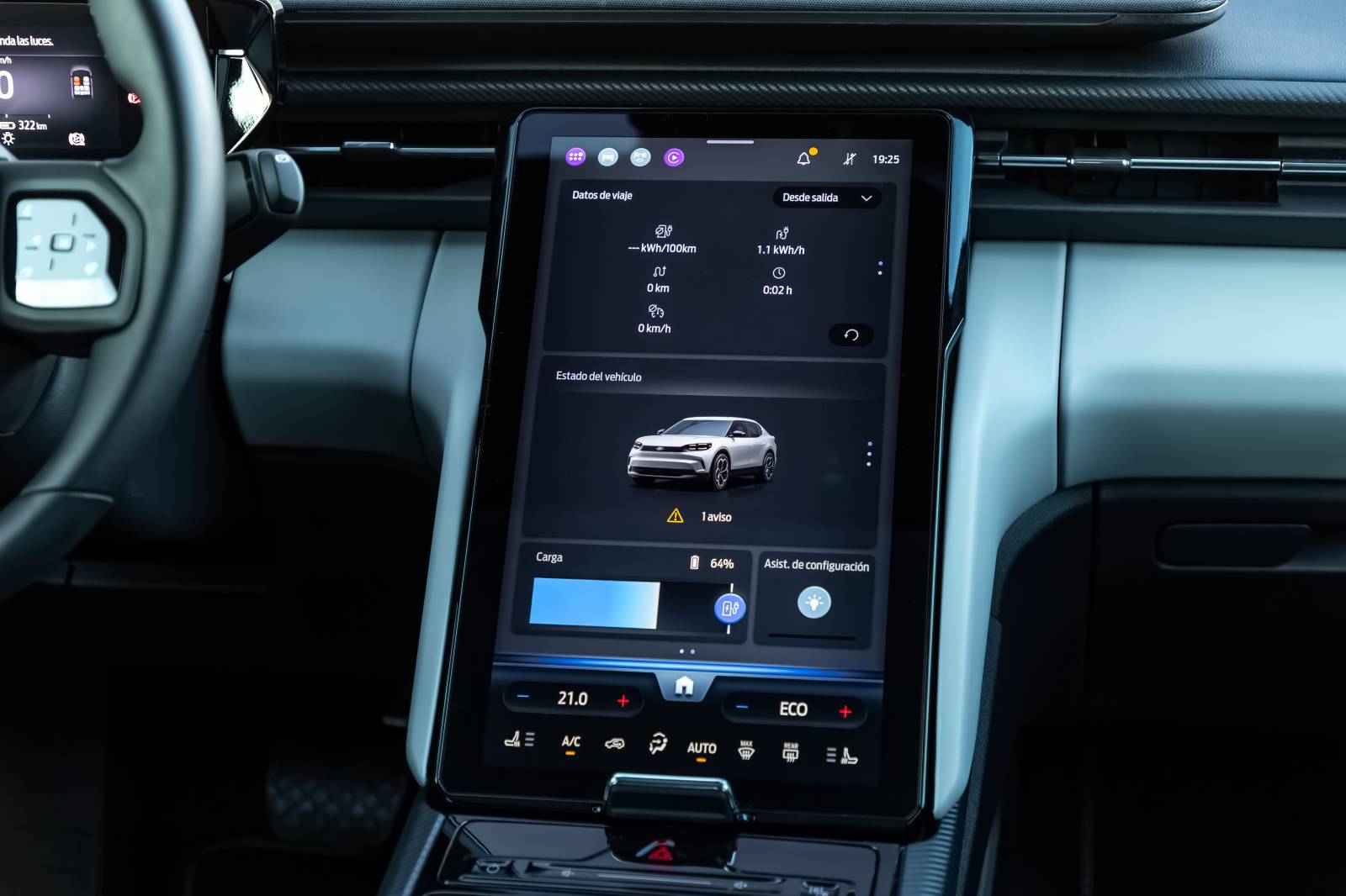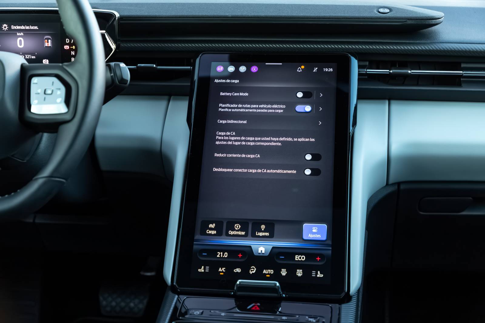 Por último y, respecto a los consumos, hablamos de un SUV eléctrico equilibrado en una conducción sosegada. Ford homologa un combinado de 16,3 kWh/100 km. Durante la prueba, en otoño, el ordenador de a bordo marcó una media de 18,1 kWh/100 km. En autopista, respetando los límites de velocidad legales, logramos 19,8 kWh/100 km.