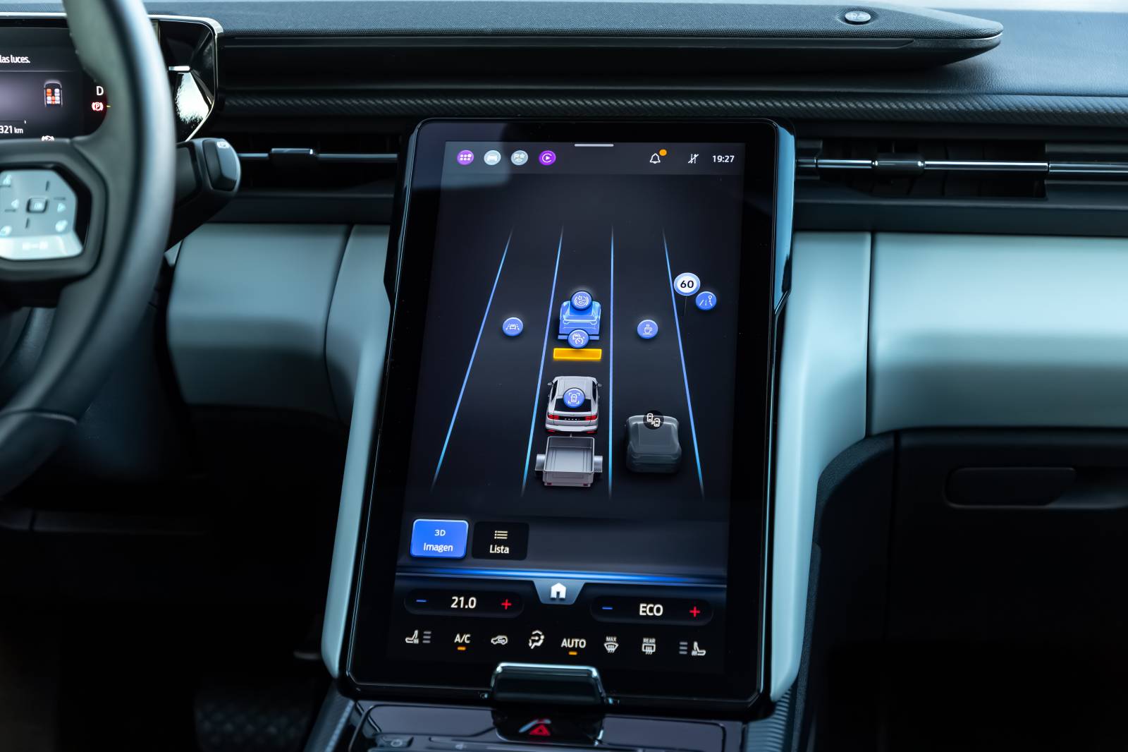 Lo hace gracias a los datos que proporcionan el sistema de navegación y los sensores de los sistemas de asistencia a la conducción. Personalmente, me parece muy intrusivo e incómodo en la mayoría de las situaciones. Lo que no encontramos es posibilidad de conducir con un solo pedal, pues no llega a detenerse por completo.