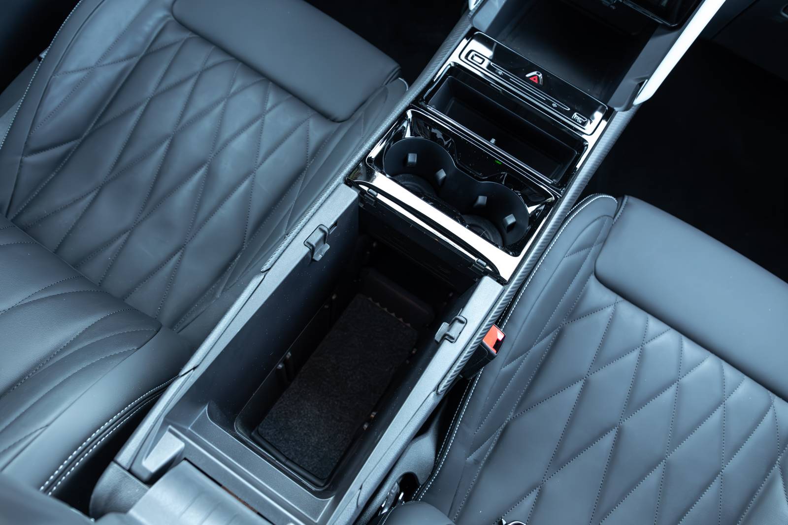 El Ford Capri es un coche amplio en todos los sentidos, desde el espacio para los pasajeros hasta los huecos de almacenamiento y carga. Por ejemplo, en la consola central hay mucho espacio tanto en la parte superior como inferior. En ella tenemos la carga inalámbrica del smartphone y bajo el reposabrazos fijo hay una generosa guantera.