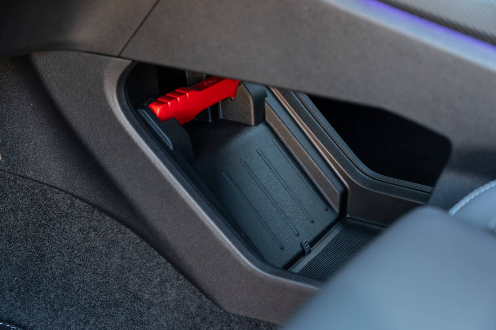 En la parte inferior de la pantalla tenemos los controles del climatizador bizona siempre visibles y de buen tamaño. A ellos se suman otras funciones esenciales ya en la consola central, como el ajuste de volumen del sistema multimedia. Detrás de la pantalla tenemos el denominado My Private Locker con las tomas USB-C. Queda oculto al bajar del todo la pantalla.
