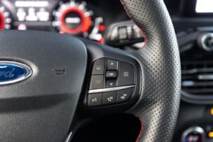 Los ST-Line se distinguen por ofrecer llantas de aleación de 18 pulgadas Rock Metallic, molduras y parrilla delantera en negro con diseño ST-Line, faros antiniebla delanteros LED, el paquete deportivo exterior, detalles y logotipos ST-Line, pedales en aluminio, suspensión deportiva, cuadro de instrumentos digital y parabrisas laminado acústico, entre otros.