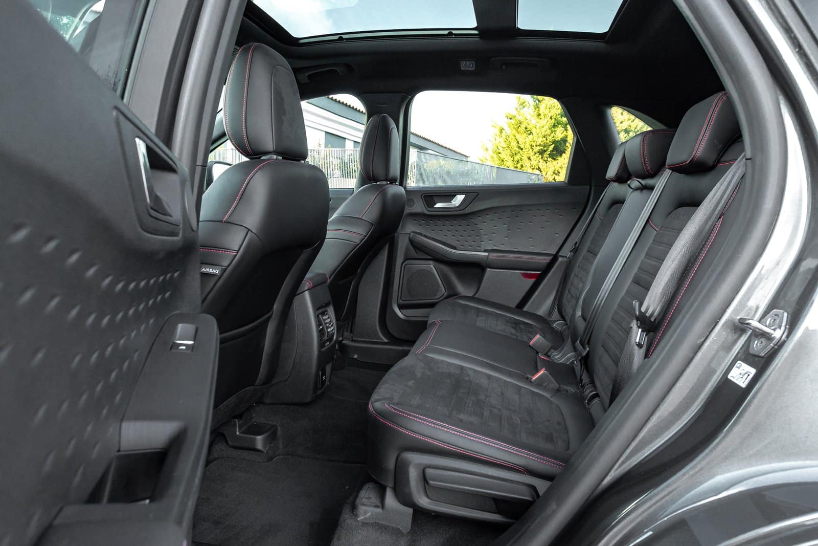 Me ha gustado la banqueta trasera deslizable (145 mm) y con ajuste del respaldo en diferentes posiciones, ya que permite dar algo más de espacio al maletero. Por supuesto, no falta un apoyabrazos central. En general, el interior del nuevo Ford Kuga merece una nota alta, aunque en los niveles de acabado más básicos notaremos la diferencia.