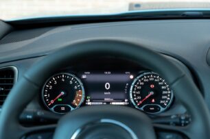 Lo que me ha chocado ligeramente es que el sistema de infoentretenimiento no se oriente hacia el conductor, sino todo lo contrario. Esto hace que debamos desviar la vista más de la cuenta para ver las indicaciones del navegador, entre otras funciones. El sistema UConnect en este acabado cuenta con una pantalla táctil a color de 8,4 pulgadas. Funciona de manera correcta, con unos gráficos sencillos, y es cómodo moverse por los menús. Incluye Apple CarPlay y Android Auto, bluetooth, DAB….