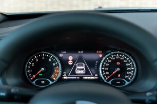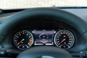 Tras el cómodo volante, que tiene los controles del sistema multimedia por detrás, vemos un cuadro de instrumentos tradicional. Personalmente, lo prefiero. Cuenta con dos robustos diales y una generosa pantalla en posición central. Esta nos brinda toda la información relativa al ordenador de a bordo de manera clara, completa e intuitiva.