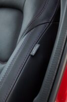 El salpicadero está compuesto por materiales blandos y de diferentes tactos -incluidas superficies forradas con costuras en contraste-.
