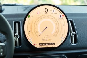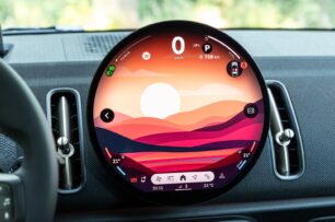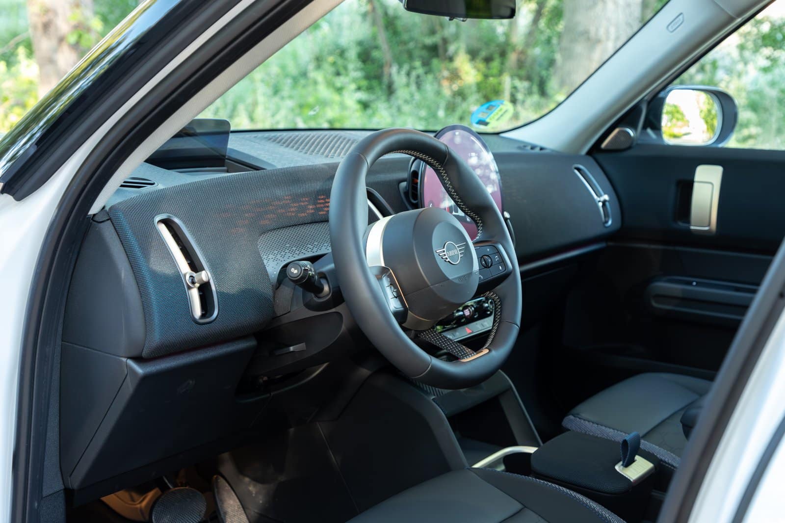 Si te han sorprendido los cambios en el exterior del MINI Countryman, espera a conocer su interior. El elemento más llamativo es la pantalla central. MINI ha abandonado todos los indicadores físicos en favor de una pantalla OLED circular de gran tamaño. Tiene biseles delgados y alberga prácticamente todas las funciones del coche.