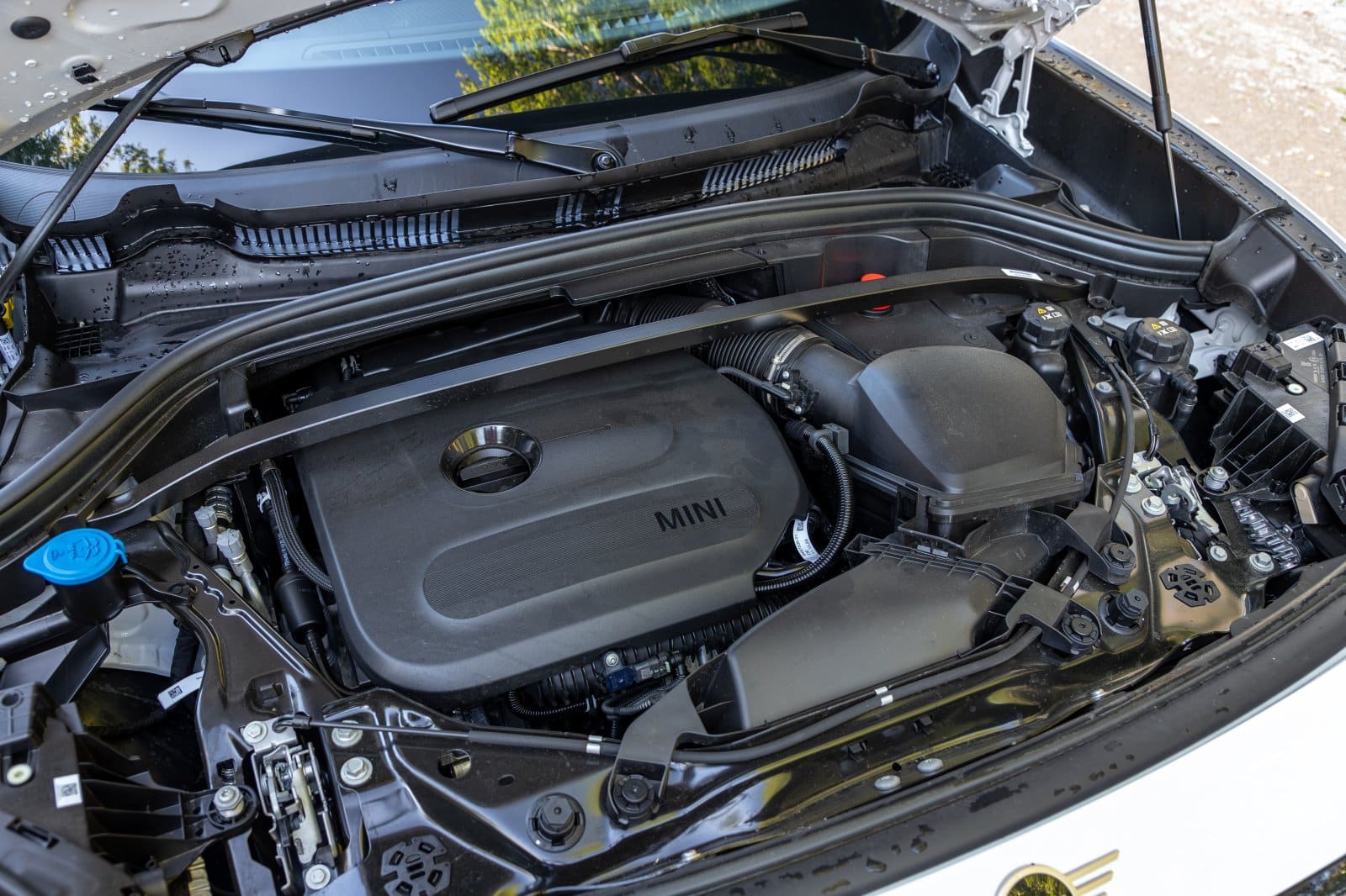 Los voladizos y el capó cortos, así como la larga distancia entre ejes, en contraste con las grandes llantas, combinan los rasgos de diseño clásicos de MINI con una carrocería de crecimiento atlético. En la parte delantera, presenta una nueva parrilla octogonal. Integra un pequeño sensor de radar utilizado para los sistemas de asistencia a la conducción de Nivel 2.