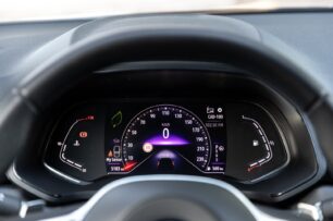Respecto al cambio DCT de siete relaciones, este se muestra suave en la mayoría de las situaciones. Cumple su función, pero no es el más rápido ni el más suave, sobre todo en maniobras a baja velocidad, y cuando necesitamos un extra de potencia, deberemos tomarnos su respuesta con calma, o bien recurrir a las levas ubicadas tras el volante.