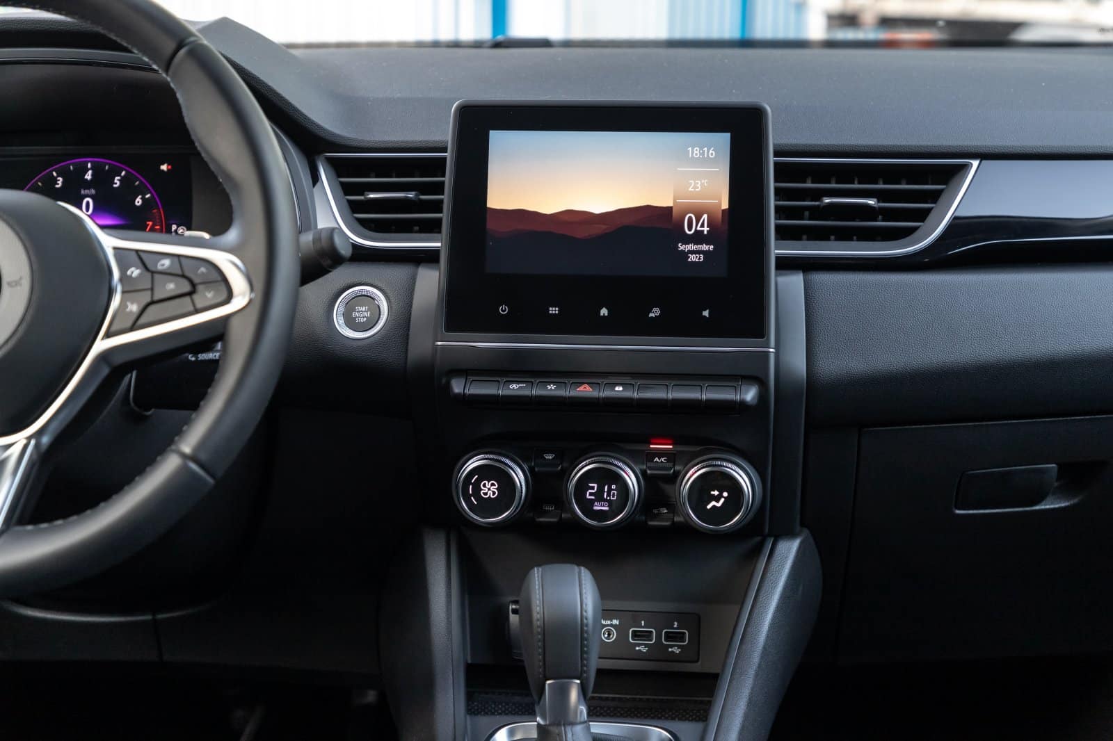 Cabe destacar que es compatible con Apple CarPlay (inalámbrico) y Android Auto. Bajo la pantalla hay una serie de botones físicos que brindan acceso directo a diversas funciones recurrentes. También fuera de la pantalla se mantienen los controles del climatizador bizona. La guantera de la consola central ofrece ajuste longitudinal.