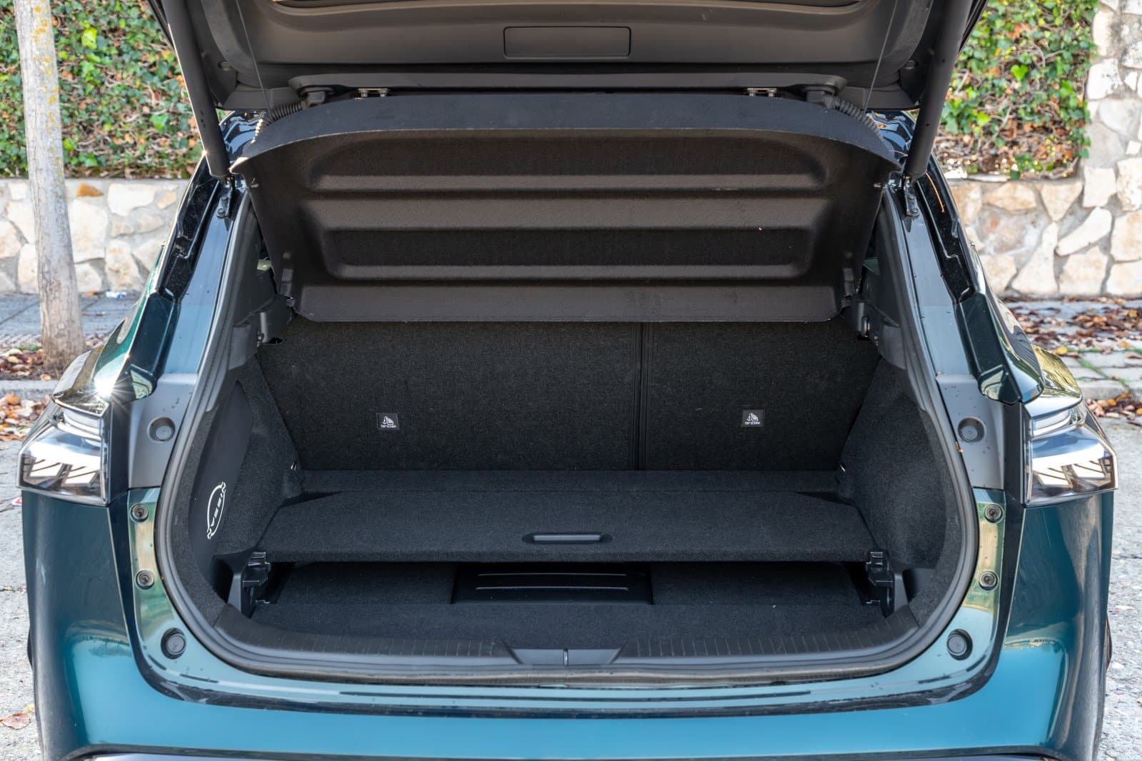 Contamos con un piso dividido en dos partes que nos permite ajustar todo o parte del maletero a dos alturas. También hay un doble fondo para las herramientas y el subwoofer. No faltan la iluminación LED, toma de 12V, un tapizado cuidado y varios ganchos y anclajes. La altura del borde de carga queda a 760 milímetros del suelo.