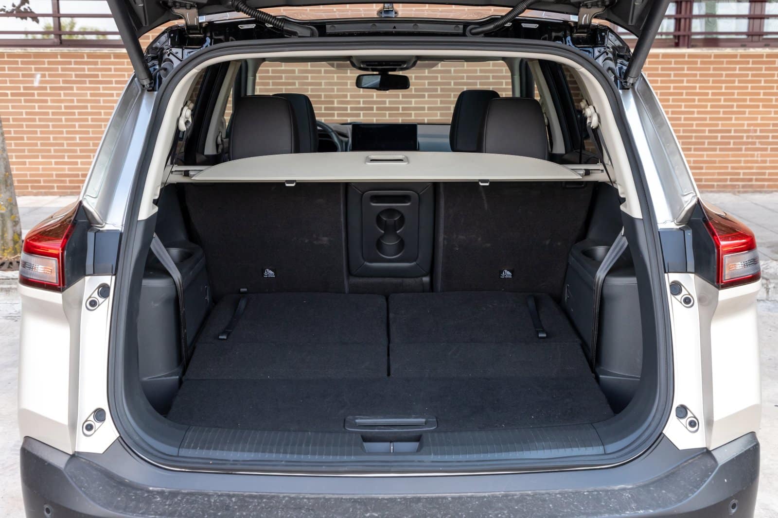 El portón trasero eléctrico manos libres permite acceder al maletero sin esfuerzo cuando tenemos las manos ocupadas. La capacidad del maletero en esta versión más equipada con e-4orce y equipo Bose es de 485 litros. Si abatimos los asientos (20:20:20), el espacio crece hasta los 1.298 litros. Las formas son muy regulares y el suelo queda plano.