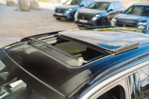 Sobre el techo vemos una antena de tipo aleta de tiburón y barras longitudinales en negro. En opción podemos equipar un techo panorámico de cristal corredizo eléctrico con cortinilla. También como extra en los MHEV se ofrece el gancho de remolque desmontable. Implica un sistema de refrigeración que mejora la capacidad de remolque (+200 kg).