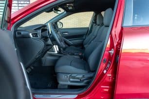 A ambos lados tenemos unos cómodos asientos de tela. Para el uso que le vamos a dar al Corolla Cross, también tienen un agarre correcto. Pueden contar, en función del acabado, con calefacción, pero no con ajustes eléctricos ni otras comodidades. Cabe destacar que los cinturones tienen ajuste en altura, algo cada vez menos común.