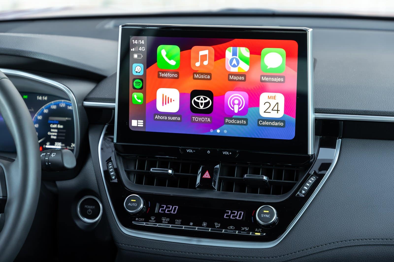 Se complementa con otra pantalla táctil en el centro del salpicadero. Esta tiene un tamaño de 10,5 pulgadas y es compatible con Android Auto y Apple CarPlay (inalámbrico). Cabe destacar que el sistema mejora notablemente con respecto al que tenía antiguamente Toyota, aunque no despunta en el segmento.