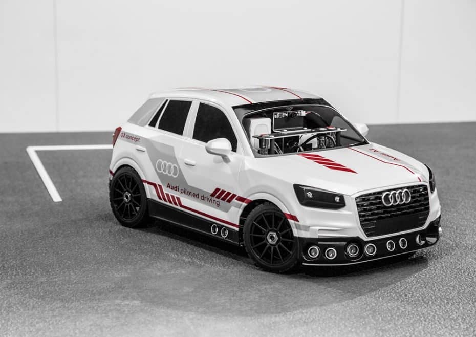 El coche que ves en las imágenes no es otra cosa que un Audi Q2 Concept a escala 1:8 que integra nada menos que un sistema de autoaprendizaje para demostrar cómo un vehículo puede desarrollar estrategias de aparcamiento inteligentes. Hemos de tener en cuenta que los sistemas de autoaprendizaje son una tecnología clave para los futuros coches de conducción pilotada, y en ese campo los de Ingolstadt no se quedan ni mucho menos atrás.
