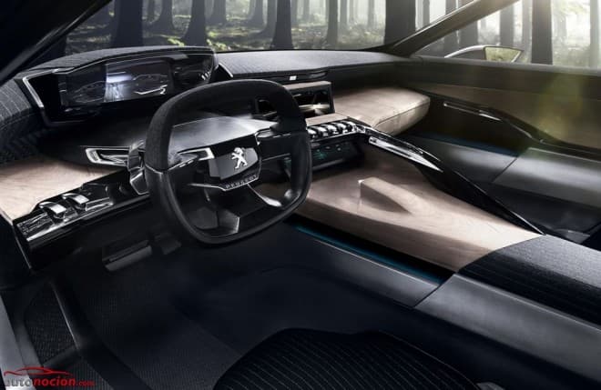 Si pasamos a su habitáculo encontraremos el conocido puesto de conducción i-Cockpit tan característico de la marca donde veremos un compacto volante en cuero y una instrumentación digital elevada para facilitar la conducción y su visualización. A su vez la consola central se ha extendido y ahora incorpora dos pantallas táctiles. La pantalla superior nos muestra la información del ordenador de a bordo, el navegador o el sistema HI-FI. Por otra parte, la segunda pantalla controla la climatización y el sistema Pure Blue (purifica el aire del habitáculo mediante la difusión de bactericidas y fungicidas).