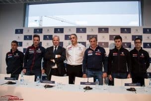 Detrás de ellos, una gran figura, que de alguna forma se ha definido como «el padre» de los mismos, Carlos Sainz ha sido sin duda uno de los protagonistas de la rueda de prensa que dio ayer el equipo de competición de Peugeot. Entre sus declaraciones destacan su buen deseo para ambos pilotos y una petición a los periodistas: «Os pido que apoyéis a los pilotos españoles«, seguido de una clara afirmación sobre el deporte español: «Hoy es un buen día para el deporte, para nuestros rallys«.
