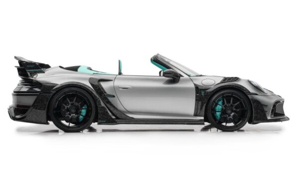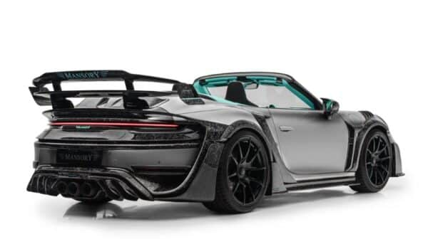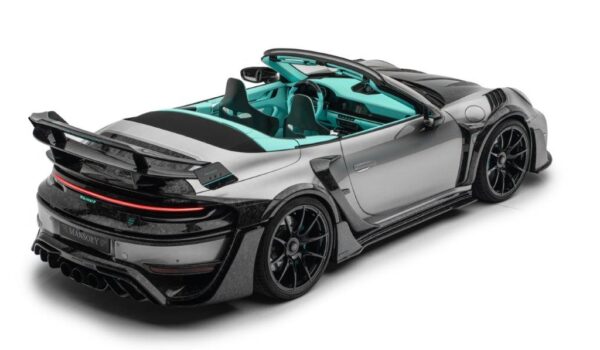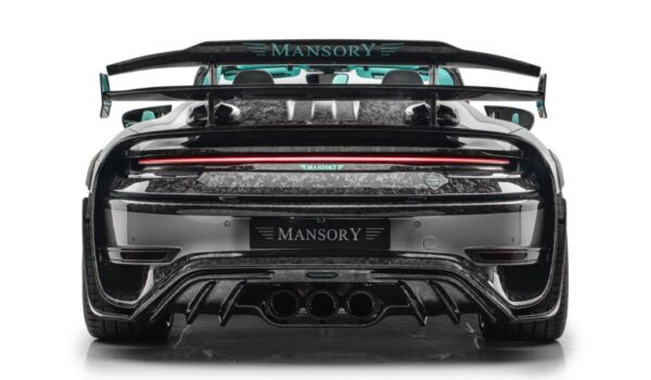 Además de los cambios visuales, el motor bóxer de seis cilindros biturbo de 3.8 litros produce ahora 900 CV (662 kW) y unos impresionantes 1.050 Nm de par en el cigüeñal, en lugar de los ya impresionantes 650 CV y 800 Nm de serie. Para conseguirlo, han sido desarrollados una serie de componentes por parte de los ingenieros de Mansory, que son responsables de la mejora del rendimiento.