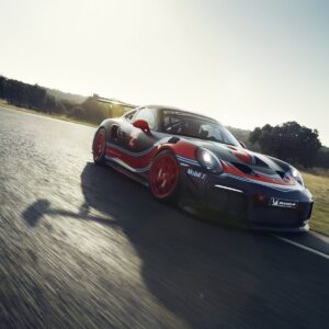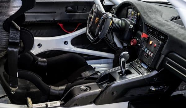 Como ya te hemos contado, utiliza el mismo bloque que el modelo de calle, un motor 3.8 litros bóxer biturbo de seis cilindros que transmite toda la potencia al eje trasero gracias a una caja de cambios PDK de doble embrague y siete relaciones. También equipa un diferencial autoblocante optimizado para competición. En el interior añade una jaula antivuelco, asientos de competición Recaro y un arnés de seguridad de seis puntos, incluso tiene aire acondicionado.