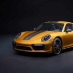 A su vez, el interior ha sido revisado para hacerlo único y elegante. Encontramos los asientos deportivos regulables en 18 posiciones cubiertos de dos capas de cuero perforado con las letras Turbo S bordadas sobre los reposacabezas, el techo forrado de Alcántara con una doble tira de Amarillo Oro, una placa identificativa de esta edición limitada o umbrales de las puertas iluminados con la denominación Exclusive Series. Una labor artesanal obra de la nueva ‘Porsche Exclusive Manufaktur’ o, para entendernos, la antigua ‘Porsche Exclusive’, el taller interno de la marca especializado en las modificaciones a medida para sus modelos.