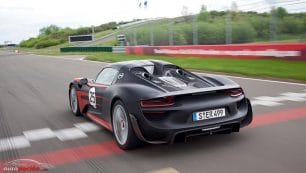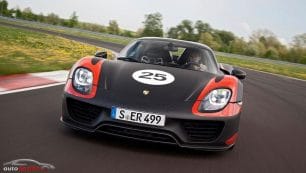 El Porsche 918 Spyder también tiene el potencial de romper muchos récords. Su actual tiempo en el Nordschleife de Nürburgring es de 7 minutos 14 segundos. Este tiempo se realizó en presencia de periodistas de todo el mundo durante las pruebas de septiembre de 2012, más de un año antes del comienzo de la producción. El prototipo del 918 Spyder fue 20 segundos más rápido que un Porsche Carrera GT. Un factor aún más importante, si cabe, es que el 918 Spyder también sobrepasa ampliamente en cuanto a eficiencia a todos los modelos previos y de la competencia. Como un híbrido enchufable, combina sistemáticamente las prestaciones dinámicas de una máquina de carreras con más de 880 CV y un consumo de combustible de poco más de tres litros por cada 100 kilómetros según ciclo NEDC, mejor incluso que muchos utilitarios actuales.