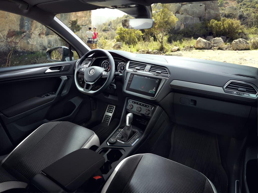 En el interior el color negro predomina para el salpicadero y ciertas molduras, además de estrenar un tapizado más resistente. Los pedales de aluminio y las alfombrillas de goma son otros de los detalles exclusivos que llevan de serie todos los Tiguan Offroad.