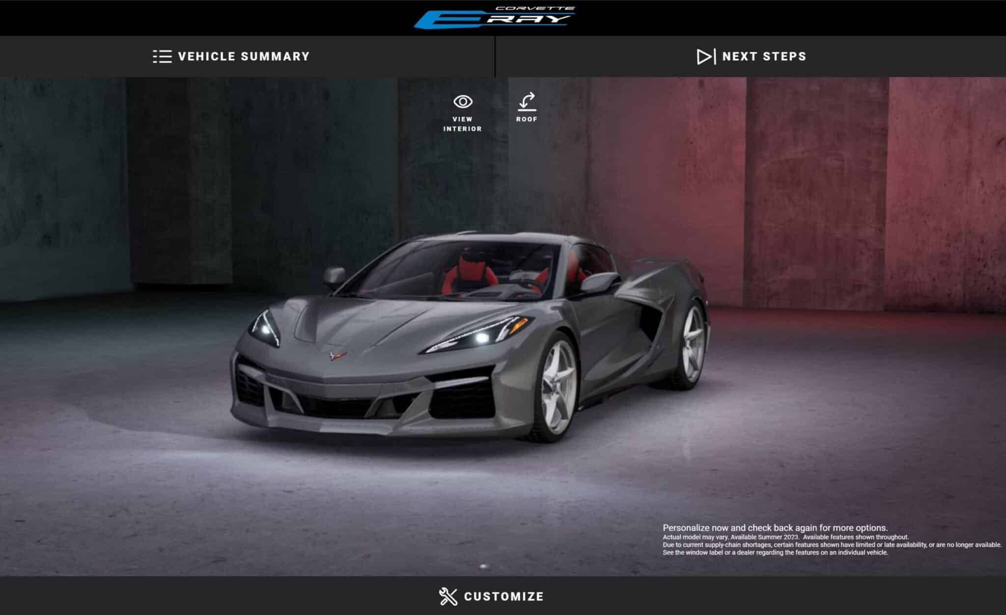 También del configurador se desprende en la letra pequeña que las primeras unidades del automóvil no llegarán hasta el verano. A nivel estético, el E-Ray presenta detalles de estilo únicos, como su postura más amplia. También hay nuevos elementos en el paragolpes delantero, un pequeño alerón en la zaga y tubos de escape cuádruples divididos.