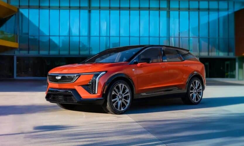 Ubicado por debajo del Cadillac Lyriq en la gama, es fácil apreciar que hereda numerosos rasgos de diseño de la última hornada de productos del fabricante de automóviles. Es el caso de la parrilla completamente cerrada que queda flanqueada por unos tecnológicos faros LED verticales. A ellos se unen un revestimiento en negro brillante y tomas de aire inferiores.