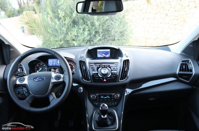 En el interior hemos percibido un importante acento de calidad. El resultado de la incorporación de nuevos materiales es discutible ya que Ford nos presenta un salpicadero excesivamente novedoso y brillante al igual que sucede en sus modelos más juveniles, lo cual puede ser incómodo para algunos gustos, sobre todo para los posibles clientes del Kuga, un modelo que fácilmente puede rondar los 30.000 euros y que precisa de un poder adquisitivo que los jóvenes no tienen. Pese a esto, todo está perfectamente ubicado, eso sí, echamos de menos unos botones un poco más grandes.