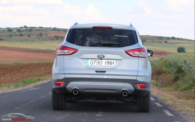 La parte inferior de la trasera del nuevo Kuga continúa ofreciendo el diseño en contraste que además de montar los sensores de aparcamiento traseros, ubica unos catadióptricos y unos faros antiniebla a ambos extremos.