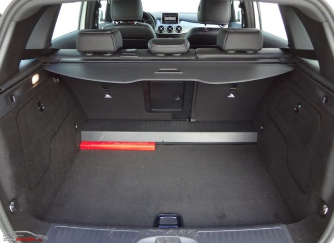 La posición del asiento es más vertical y al mismo tiempo, el espacio para la cabeza se ha mejorado aún más. La altura máxima en la parte delantera se ha mejorado hasta alcanzar los 1.047 mm en la parte delantera (sin techo corredizo). La Clase B ofrece un buen espacio para el equipaje. El maletero tiene una capacidad de 488 litros. Aún más importante que la medición volumétrica del maletero, es el volumen real de uso en el que la nueva clase B nos sorprende con un ancho de maletero entre los pasos de rueda de 1.050 mm (40 mm más que su predecesor). Como una característica particularmente destacable, el umbral de carga se ha reducido en cinco milímetros en comparación con su predecesor y ahora está a una altura de 616 milímetros. El respaldo del asiento trasero se puede abatir con una división 60:40. Como opción, tenemos el sistema EASY-VARIO-PLUS. Esto permite la reorganización flexible del interior en poco tiempo. La capacidad de equipaje aumenta desde 488 hasta 666 litros. Bajo el suelo del maletero tenemos unos 72 litros adicionales de espacio de almacenamiento. En la versión básica, el suelo se encuentra limitado a la posición inferior, pero es extraíble.