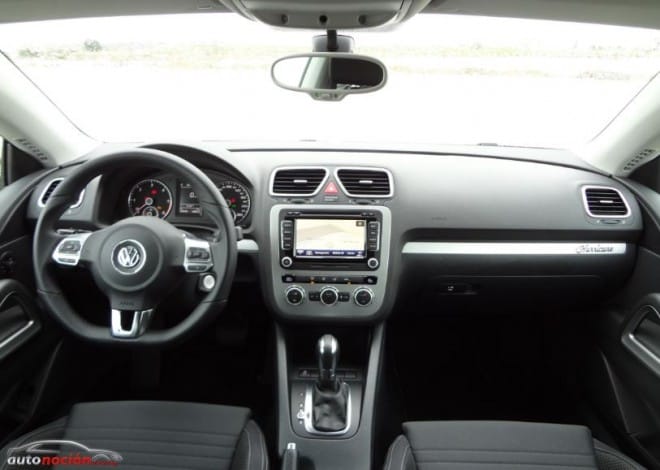 Directamente por debajo de las dos salidas de aire centrales se encuentra situado el equipo de audio. En el Scirocco probado contábamos con el sistema RNS 510 que posee una pantalla táctil de 6,5 pulgadas y un disco duro de 30 Gb. El Scirocco ha sido equipado con un cuadro de instrumentos con iluminación blanca.
