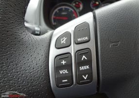 El volante tiene cierto remate deportivo y se encuentra revestido en cuero. También contamos con botones de manejo de la radio y del control de velocidad.