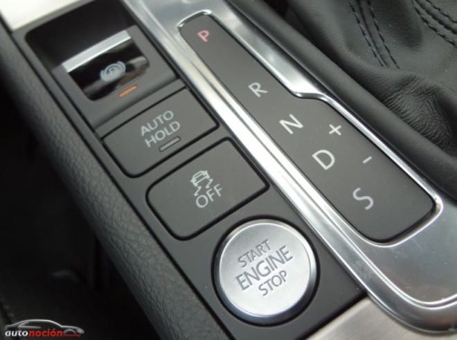 A la derecha de la palanca de cambios ha sido integrado un teclado para manejar el sistema Start/Stop, el sistema de sensores de aparcamiento y el asistente de aparcamiento automático ‘Park Assist’.