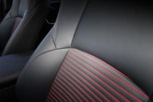 Los asientos deporitvos sujetan el cuerpo de los ocupantes a la perfección. Están tapizados en cuero con costuras en rojo, al igual que el salpicadero, y tanto los delanteros como los traseros cuentan con calefacción. Además, el del conductor incluye regulación eléctrica.