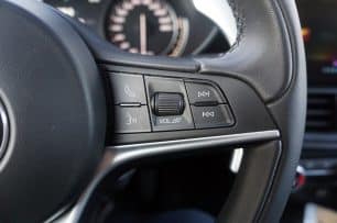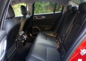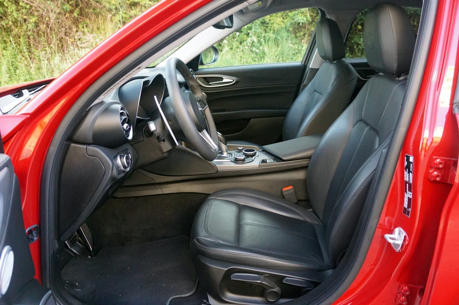 El Alfa Romeo Giulia está en un interesante término medio dentro del segmento D en lo relativo a espacio habitable. Las plazas delanteras son holgadas en todas las direcciones (siempre que no se incluya el techo solar), y la postura al volante es muy cómoda, con todos los mandos a mano.