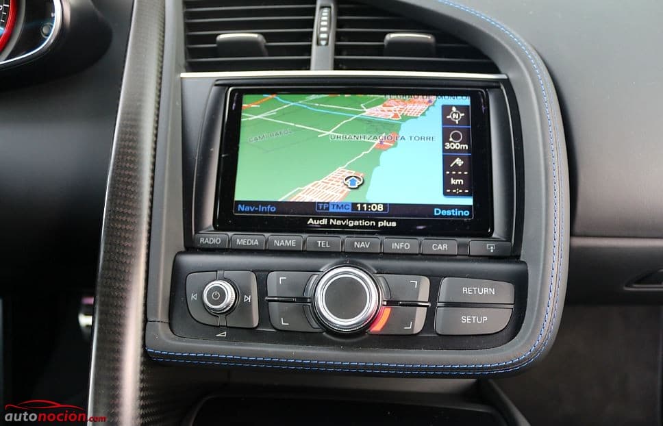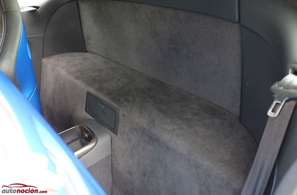 Pese a que anteriormente he comentado algo acerca de la apariencia claustrofóbica no he querido decir que sea algo ajustado o pequeño sino que quieren hacer que así lo parezca. Efectivamente, el habitáculo del R8 cuenta con espacio más que suficiente para dos ocupantes de gran tamaño. Además del generoso espacio personal, el modelo cuenta con un gran hueco diáfano tras los asientos. Se trata de una bancada totalmente horizontal tapizada en Alcántara en la que podemos transportar objetos de pequeño tamaño como maletines o mochilas, aunque con la debida sujeción también caben un par de maletas de equipaje de mano.