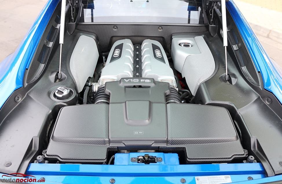 El motor V10 toca techo en las 8.700 rpm, momento en el que los pistones recorren 26,9 metros por segundo. El cigüeñal del diez cilindros se ha concebido como un árbol de tipo common pin, de modo que se obtienen alternativamente distancias de encendido de 54 y 90 grados.