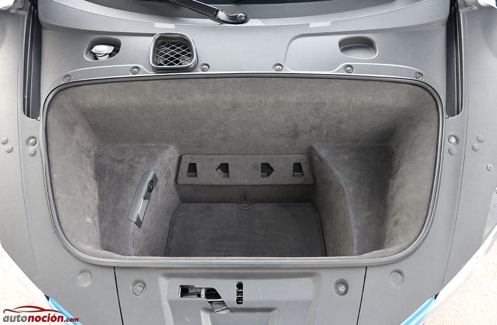 El conductor y el acompañante podrán disfrutar de la generosa oferta de espacio a la que ha dado lugar la larga batalla de 2,65 m. Otra de las ventajas del R8 es su maletero: un volumen de 100 litros debajo del ligero capó delantero y otros 90 litros detrás de los asientos. Hay que destacar que el hueco de 100 litros es muy caluroso así que ojo con lo que metemos dentro…