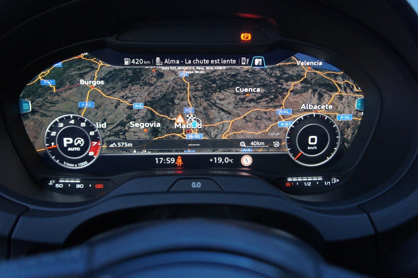 Circulando por autovía se viaja tan cómodo como en cualquier otro Audi A3. Tiene una pisada sólida, un tacto de dirección excelente y la suspensión consigue filtrar muy bien las irregularidades. No suena demasiado y aunque va equipado con unos neumáticos enormes, la calidad de rodadura se mantiene en unos niveles muy buenos.