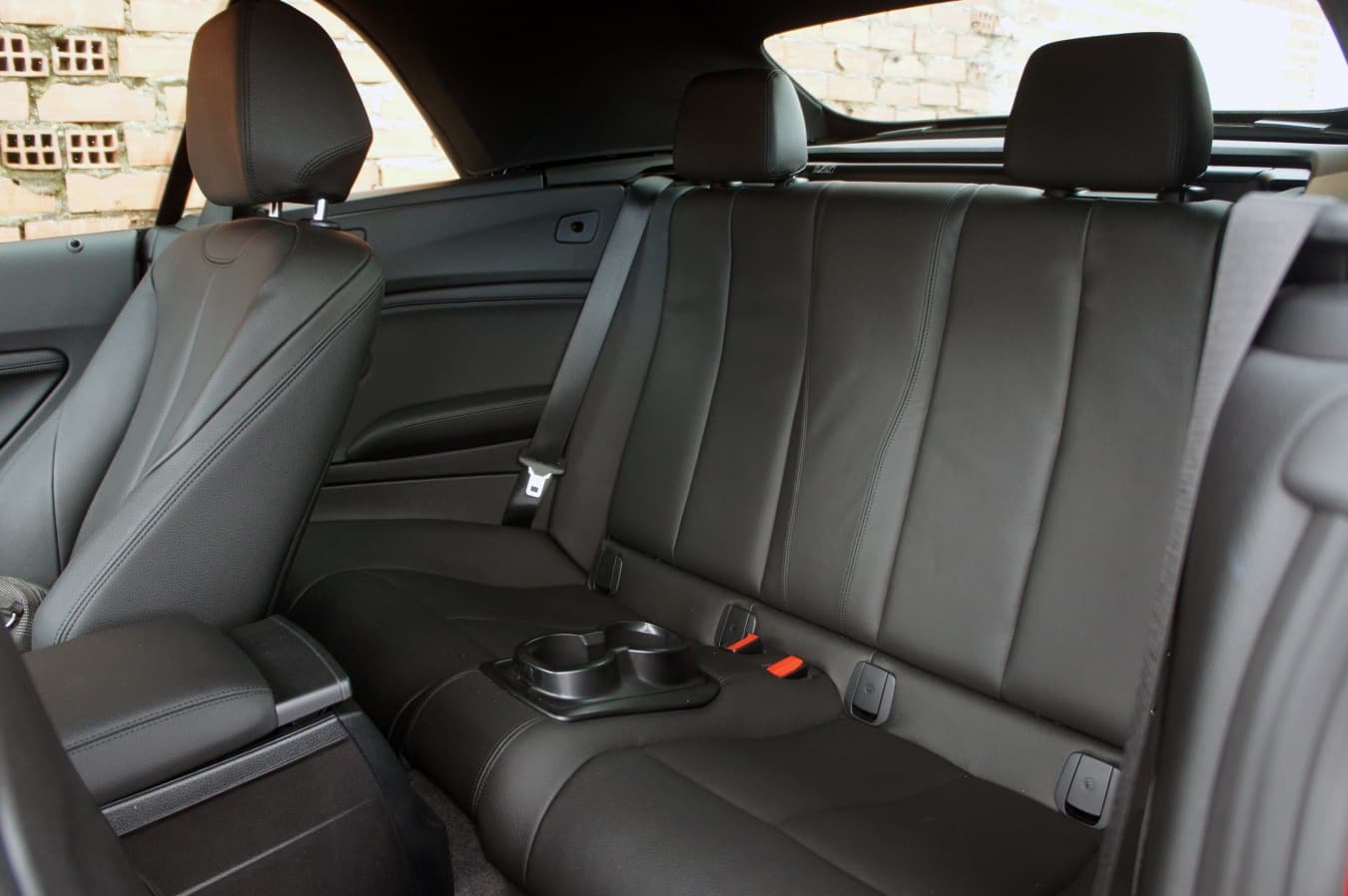 El BMW Serie 2 en su versión coupé no es especialmente amplio debido a unas plazas posteriores algo justas y en el caso del descapotable las limitaciones son todavía mayores. Pese a ello, son suficientemente amplias para acoger a dos adultos no muy altos en desplazamientos cortos y medios.