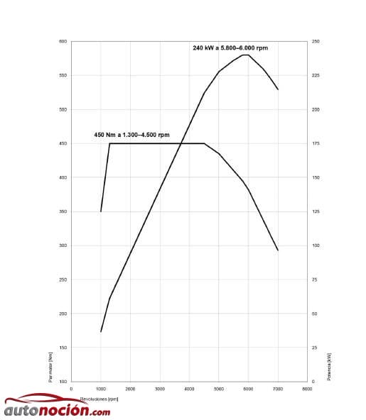 Este propulsor de 2.979 cc tiene una potencia máxima de 240 kW/326 CV entre 5.800 y 6.000 rpm. El diámetro x carrera es de 84 x 89,6.