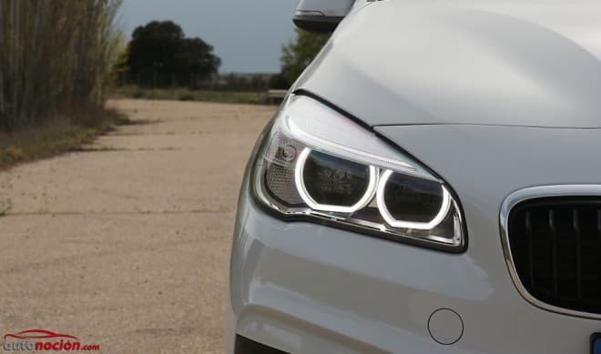 No cabe duda de que el Serie 2 Active Tourer es un BMW en cuanto a diseño exterior. En su frontal nos encontramos con los característicos riñones con listones verticales cromados. A ambos lados de estas icónicas entradas de aire nuestra unidad montaba unos faros con iluminación Bi-LED ya que BMW pretende abandonar el xenón en sus próximos modelos. Si te gusta el xenón, no te asustes ya que esta tecnología tiene la luminosidad de un sistema xenón comparable, provisto de anillos luminosos de LED para la luz diurna, sin embargo, tan sólo consume la mitad de su energía.