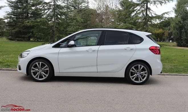 Visto desde el lateral, el BMW Serie 2 Active Tourer cuenta con varias superficies cóncavas y convexas que se extienden por el lateral. La más importante es la que se encuentra a la altura de los ergonómicos tiradores de las puertas y que se extiende hasta la zaga del vehículo. Nuestra unidad contaba con un sistema de apertura y cierre sin llave con lo que bastaba acercarse al vehículo y agarrar el tirador para que el vehículo se abriese.