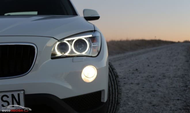En la parte frontal del BMW X1 nos encontramos a la tradicional parrilla ovoide doble escoltada por los grupos ópticos de grandes dimensiones que de forma opcional, en nuestra unidad equipaban luz LED diurna y proyectores de xenón. La luz diurna LED se compone por dos círculos con una especie de ceja superior. Esta curiosa composición, en parte, característica de todos los modelos BMW con xenón, ofrece una firma lumínica inconfundible.