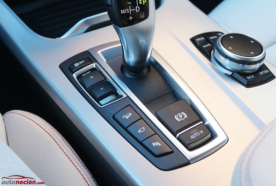 A la izquierda de la palanca de cambios tenemos el botón de desactivación del control de tracción, el control de descenso, el sistema de cámaras y la activación/desactivación del sistema de ayuda al estacionamiento y el Driving Experience Control -un sistema que da vidilla o economía a los modelos de la marca-. Este sistema modifica las características del funcionamiento del motor y las condiciones de la intervención del sistema de estabilización DSC. De serie puede escogerse entre los modos COMFORT, SPORT, SPORT + y ECO PRO y aunque pueda pareceros una chorrada, dependiendo del modo que seleccionemos podemos lograr los consumos de un diésel o las prestaciones de un modelo de algo más de potencia.