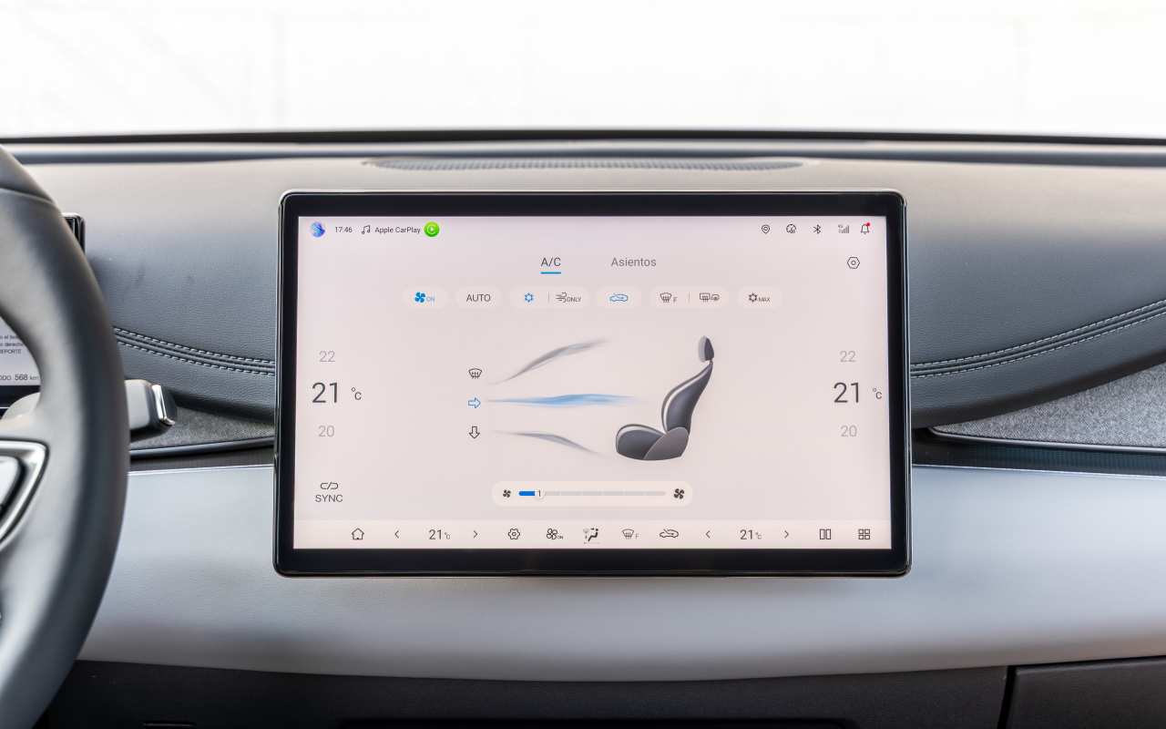 Los asientos delanteros, con ajuste eléctrico, calefacción y ventilación, ofrecen gran confort y buen agarre lateral. El tapizado en polipiel texturizada perforada aporta un tacto agradable y resistente. Detrás, el espacio para piernas y cabeza es excelente, y el techo solar panorámico (en los acabados Comfort y Comfort Lite) aporta luminosidad y amplitud.
