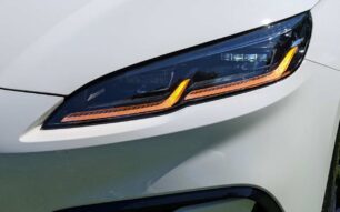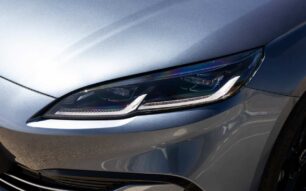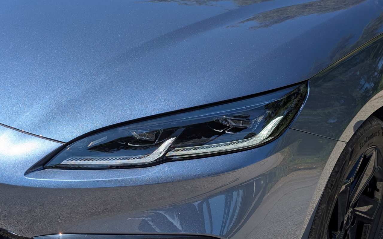 Mide 4.840 mm metros de largo, 1.875 mm de ancho y 1.505 mm de alto, con una distancia entre ejes de 2.790 mm, superior a la de muchos de sus rivales directos. En el frontal destaca una parrilla inspirada en las olas del mar con entradas de aire activas y unos faros LED con firma luminosa propia. La gran toma trapezoidal inferior, enmarcada por inserciones cromadas, refuerza su aire tecnológico.